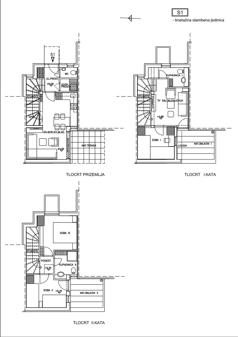 - 1. poschodie: jedna spálňa, salónik, kúpeľňa a balkón.